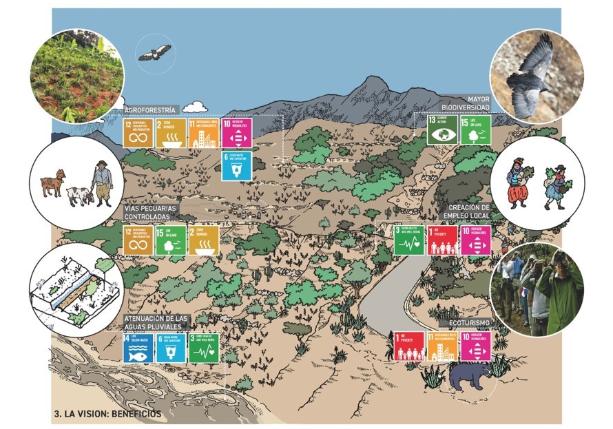 Generará múltiples beneficios como: la captura anual de 7,2 millones de toneladas de CO2, la creación de más de 3 millones de días de empleo local y la producción aproximada de 18 toneladas de alimentos por hectárea cada año. Se restaurarán diversos ecosistemas, incluyendo bosque seco tropical, matorral andino, pastizales y humedales.
