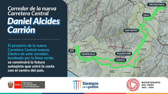 Los distritos que formarán parte de la nueva Carretera Central son Ate, Cieneguilla, Huarochirí, San Mateo, Yauli y Pachachaca.