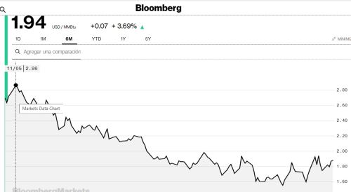 En el gráfico se verifica el descenso del precio del hidrocarburo en el mercado internacional.