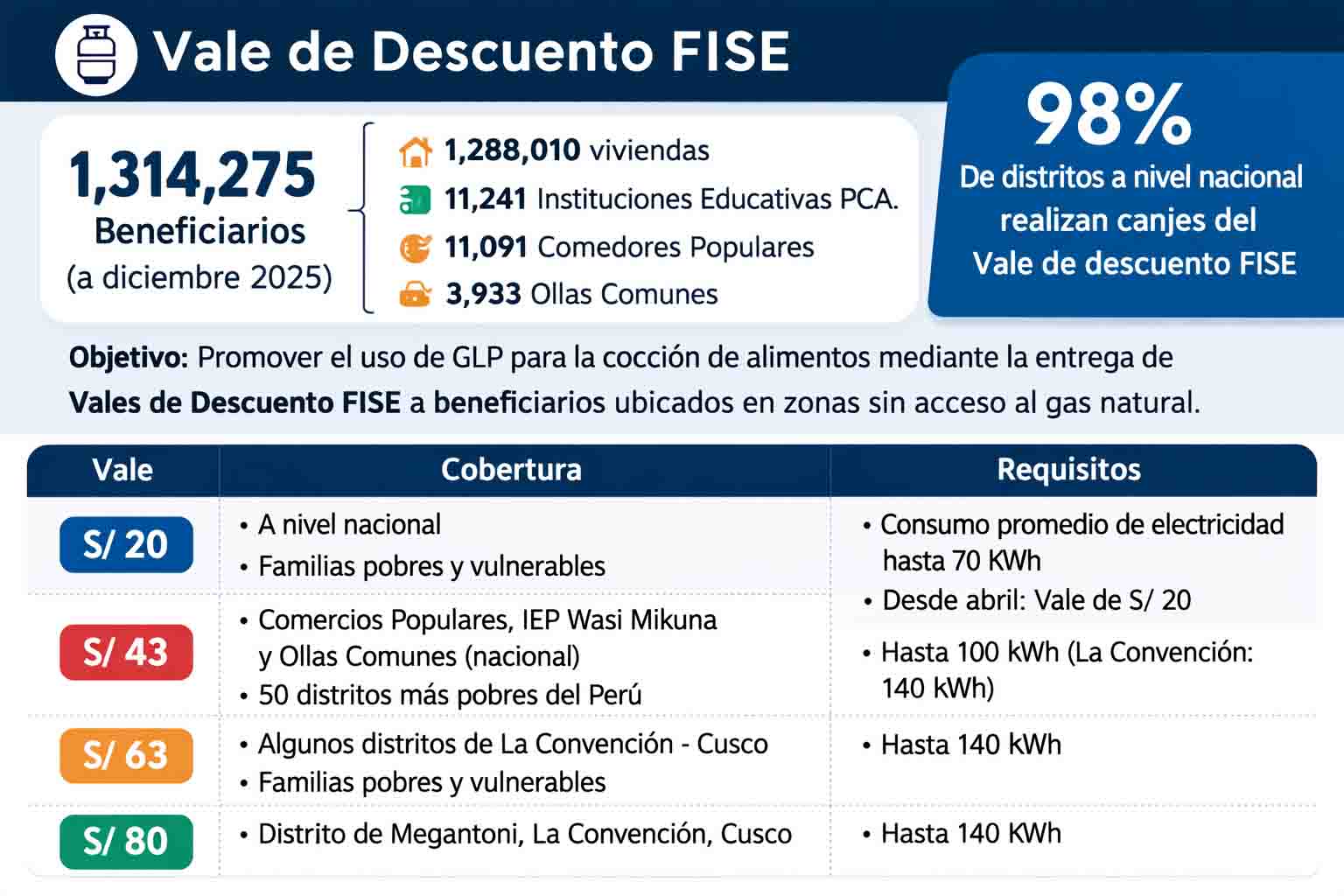 El programa Vale de Descuento GLP se ha consolidado como la intervención social con mayor penetración en el Perú, alcanzando al 98% de los distritos a nivel nacional.