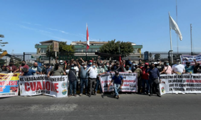 Cerca de 100 trabajadores de la mina Cuajone de Southern Perú realizaron un plantón esta mañana en el frontis del Ministerio de Energía y Minas, en...