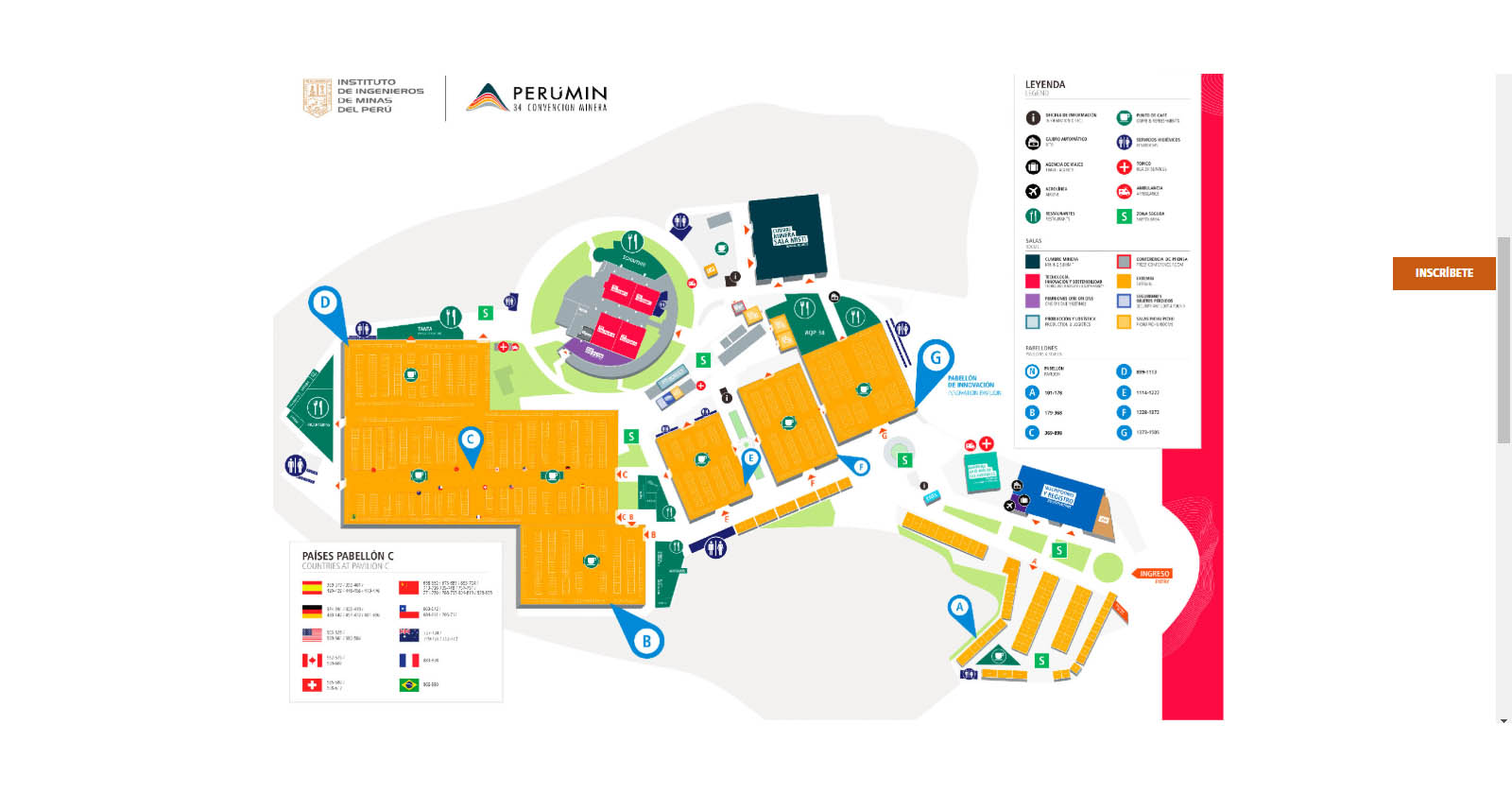 Perumin 34 Convención Minera, es el evento más importante que reúne a los principales proveedores mineros del Perú y el mundo. Conferencias y exhibición de lo más reciente para el sector minero podrán encontrar los visitantes en los diferentes pabellones. Precisamente para que estén mejor ubicados la organización ha puesto a disposición el plano virtual de Perumin, el cual lo pueden imprimir para de esta manera organizar mejor su recorrido.