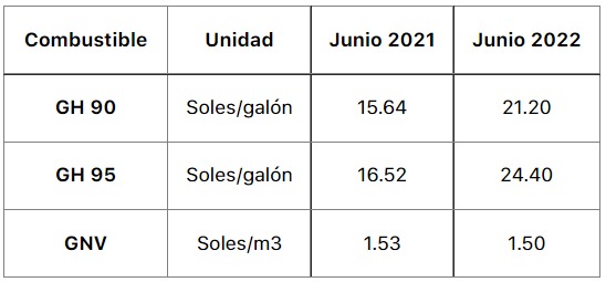Mientras que en el caso de la gasolina de 95 octanos el precio se elevó de 16.52 en junio 2021 a S/ 24.40 en este 2022, lo que implica que se esté pagando S/ 7.88 más por galón.
