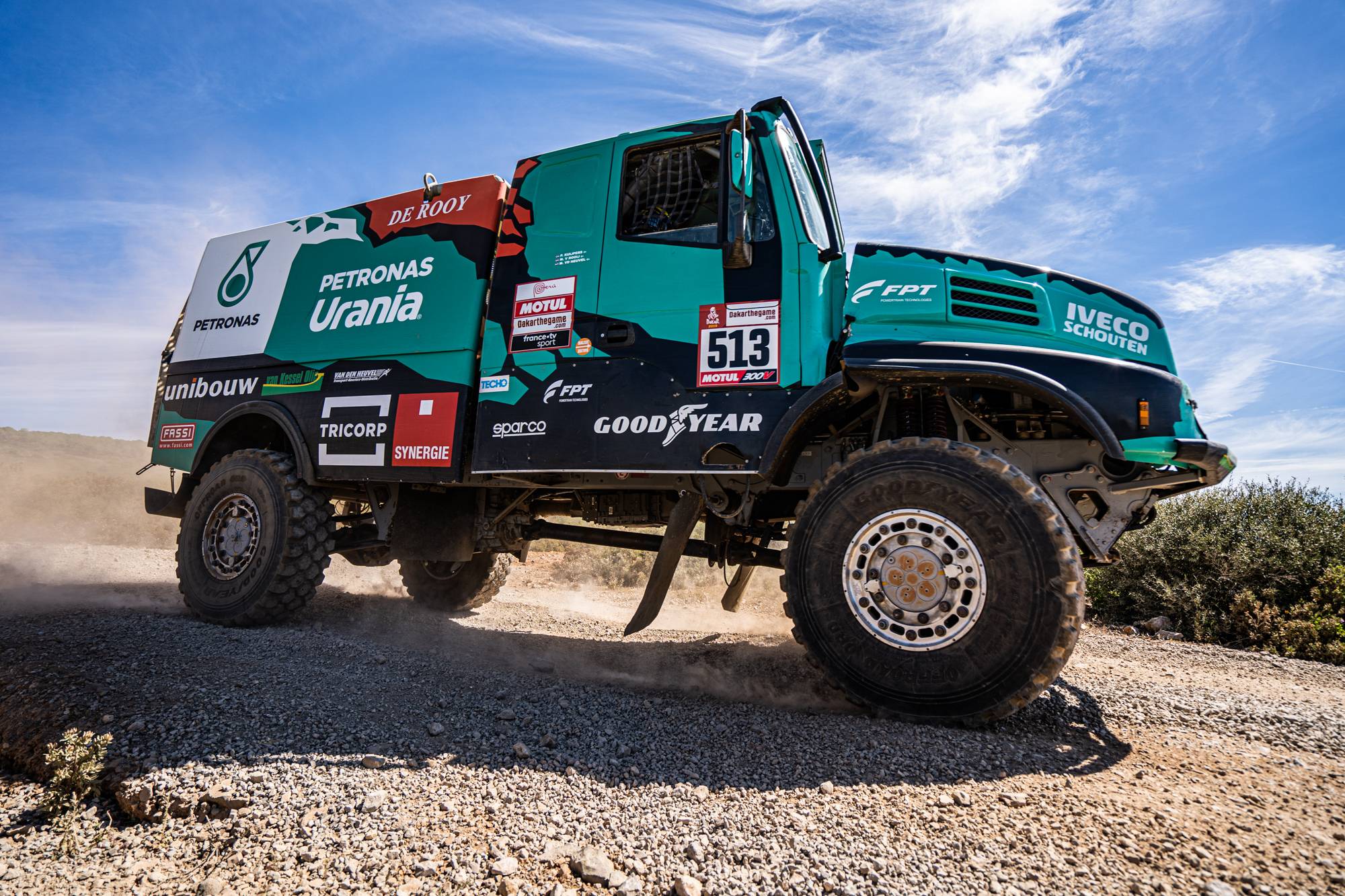 En esta edición, Goodyear con su sólido récord en neumáticos estándar es el proveedor oficial de los dos equipos favoritos de camiones: Kamaz-master y Petronas De Rooy Iveco, quien acumula dos victorias con la marca.