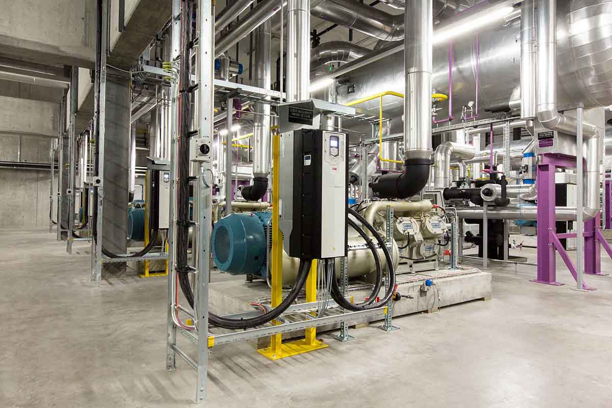 Aunque no suelen estar a la vista del público, hay motores eléctricos y convertidores de frecuencia que optimizan su funcionamiento, integrados en prácticamente todos los espacios construidos. Mantienen en funcionamiento un enorme abanico de aplicaciones básicas para nuestra forma de vida actual: desde bombas, ventiladores y cintas transportadoras industriales en sistemas de producción y propulsión, hasta compresores para aparatos eléctricos y sistemas de climatización de edificios.