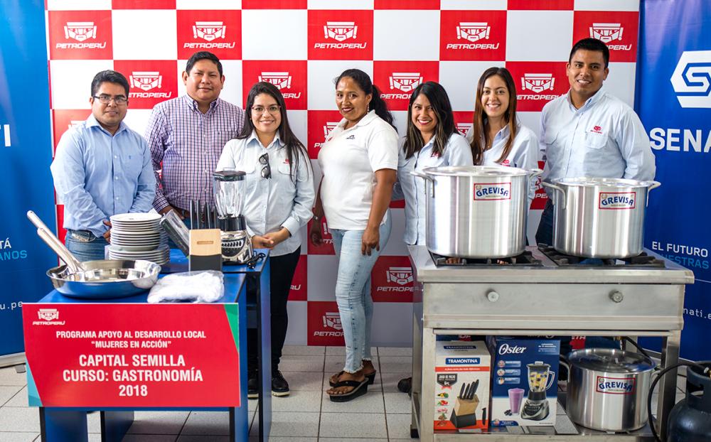 Este programa de capacitación técnico-productivo forma parte de los compromisos del Programa de Apoyo al Desarrollo Local del Plan de Relaciones Comunitarias del Proyecto Modernización de Refinería Talara, mediante el que se capacitó, en el 2018, a 140 mujeres durante siete meses en 7 talleres: auxiliar de cocina, panificación y pastelería; estampado textil, manualidades, cosmetología, tejido a crochet y artesanía marina.