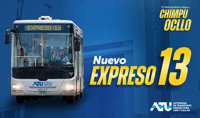 En tan solo 45 minutos, los vecinos de Lima Norte podrán movilizarse desde el nuevo terminal Chimpu Ocllo del Metropolitano, en Carabayllo, hasta la estación Central, en el Cercado de Lima, gracias al nuevo servicio Expreso 13 – Chimpu Ocllo que pondrá en funcionamiento la Autoridad de Transporte Urbano para Lima y Callao (ATU), entidad adscrita al Ministerio de Transportes y Comunicaciones (MTC).