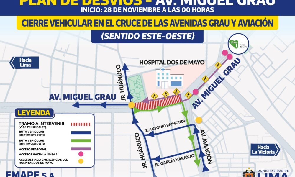 A partir de las 00:00 horas de este viernes 28 de noviembre, la Municipalidad de Lima, a través de la Emape, implementará el cierre vehicular en...