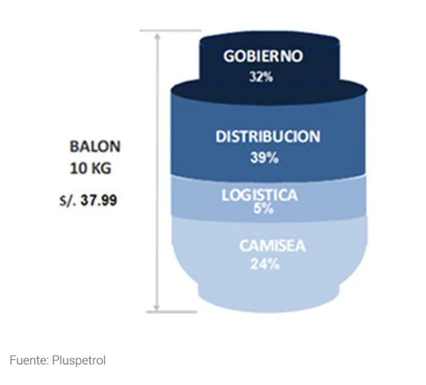 Añaden que el precio de venta del GLP que corresponde a Camisea, como productor, representa solo un 24% del precio final a los consumidores, mientras que el otro 76% del precio final corresponde a los fraccionadores y distribuidores (39%), logística (5%) e impuestos (32%).