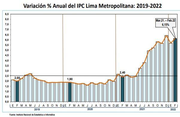 El Índice de Precios al Consumidor reportó un aumento mensual de 0.31% en febrero del presente año, según cifras del Instituto Nacional de Estadística e Informática (INEI). De acuerdo con dicha entidad, desde la Asociación Automotriz del Perú (AAP) precisaron que, el resultado fue mayor al observado el pasado mes de enero (0.04%). En tanto, la variación acumulada del primer bimestre del 2022 fue de 0.35%, mientras que la variación anual, correspondiente al periodo marzo 2021 – febrero 2022, fue de 6.15%, con una tasa promedio mensual de 0.50%.