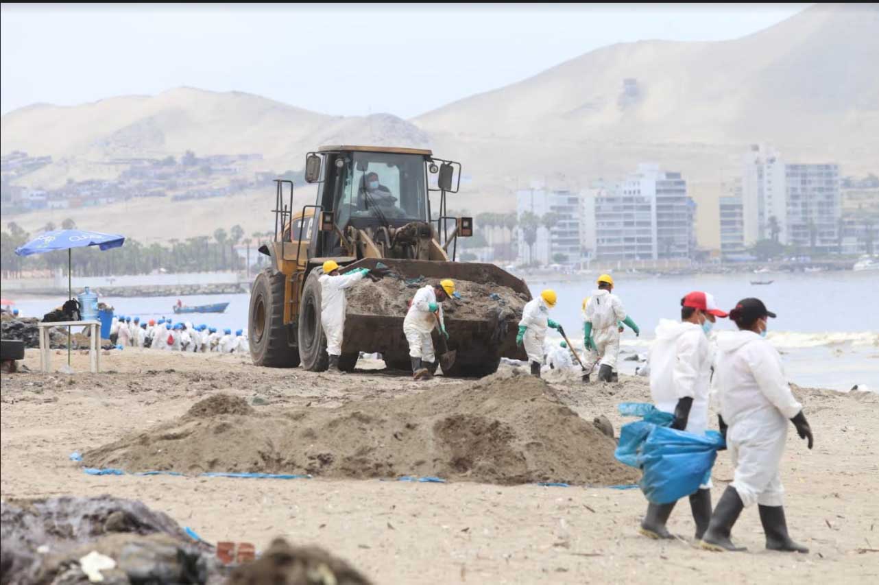 En el día de hoy las labores de limpieza en tierra y en el mar avanzan favorablemente, con más de 1.800 efectivos desplegados. El aprovisionamiento de material adicional de protección y absorción y dispersante sigue su curso y los efectivos desplegados están apoyados por 58 unidades de maquinaria pesada, 55 embarcaciones, 5 skimmers (equipos de limpieza marina), 7 tanques flotantes y 2.800 metros de barrera de contención instalada entre Cavero y Faro Chancay. Hasta la fecha, la empresa ha logrado mover   más de 6,000m3 de tierra entre la que está en Refinería La Pampilla y acopiada, lo cual representa 1,200 contenedores.