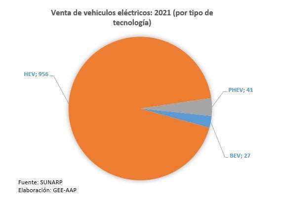 Al desagregar la información según tipo de tecnología, se observa que los vehículos electrificados más vendidos entre enero y octubre de 2021 fueron los híbridos convencionales o HEV (Hybrid Electric Vehicle, por sus siglas en inglés) con 956 unidades, seguido de los híbridos enchufables o PHEV (Plug-in Hybrid Electric Vehicle) con 41 unidades y más atrás se encuentran los eléctricos puros o BEV (Battery Electric Vehicle) con 27 unidades.