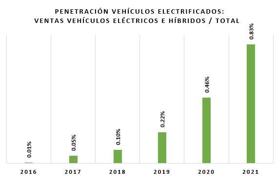 Al cierre del 2021, la participación de dichos vehículos dentro de las ventas totales de vehículos nuevos se ubicó en 0.83%, por encima del 0.46% registrado el año anterior. “Gracias al importante incremento de las ventas de vehículos electrificados, la penetración de dichas unidades en el mercado automotriz también ha aumentado”, refirió Morisaki.